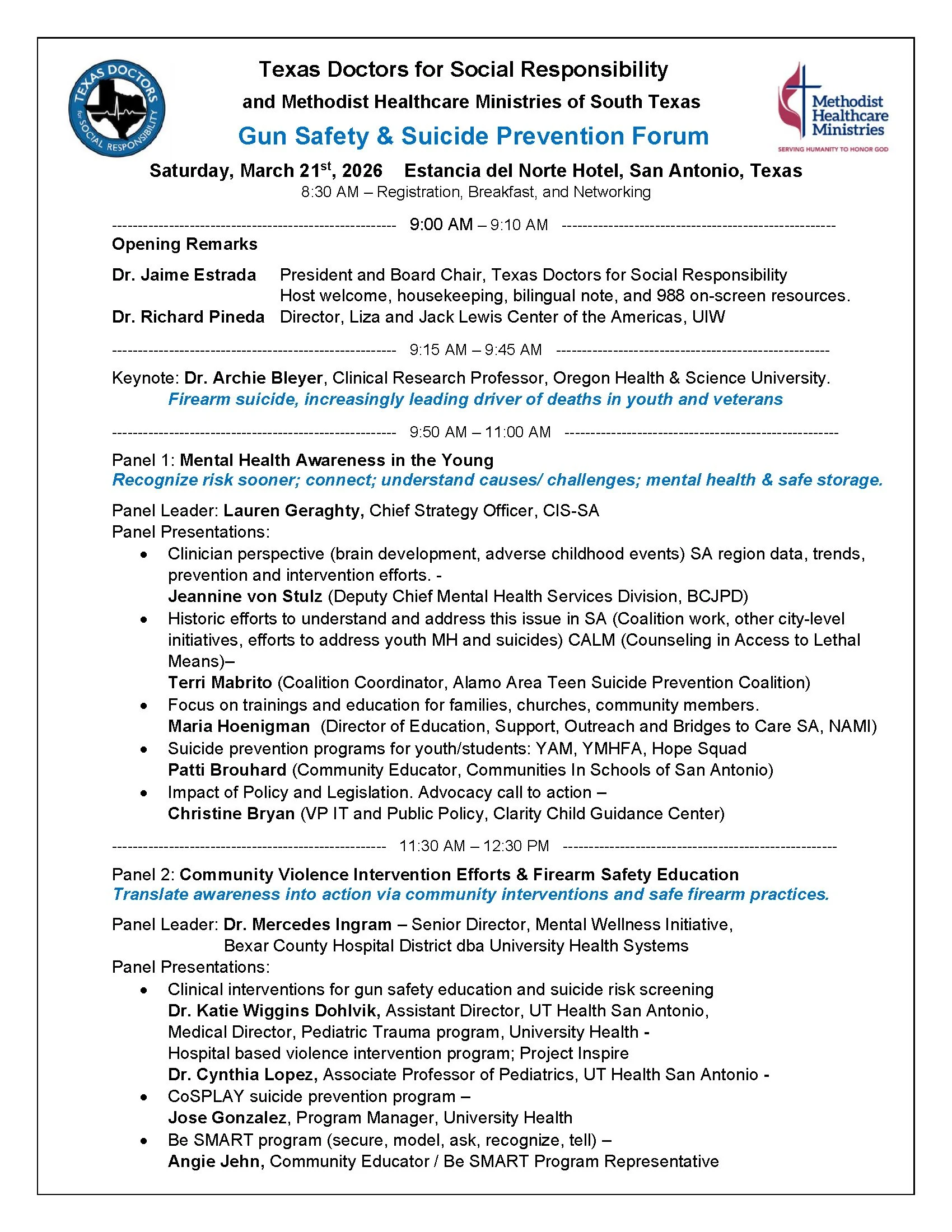We envision a country where every healthcare professional advocates for stronger gun violence prevention laws and for responsible gun ownership. In Texas we want to shape the legislative dialogue about recognizing gun violence as a preventable public health epidemic.